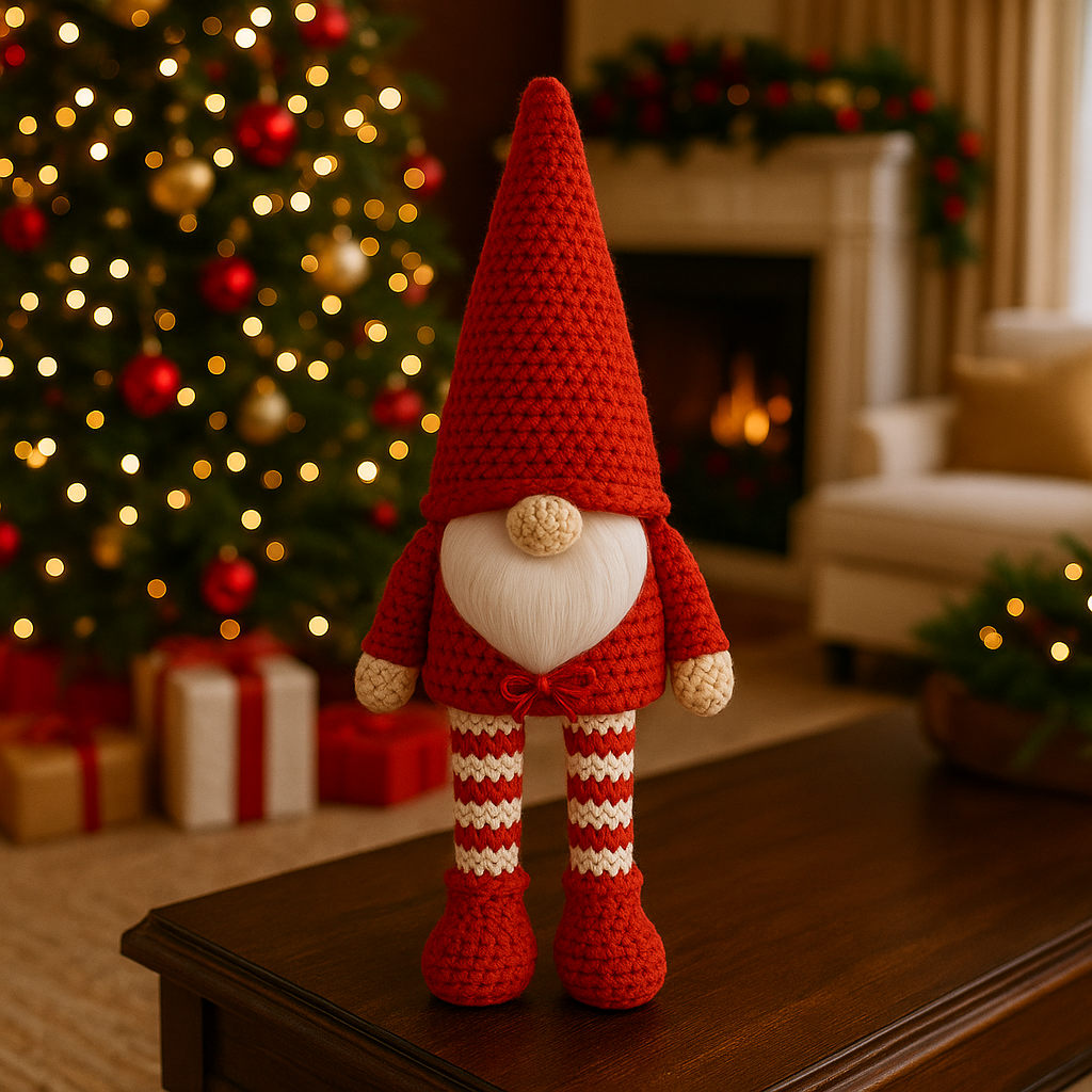 Cada detalhe do Gnomo Vermelho de Natal em Crochê Trama Encantada foi pensado para transmitir carinho, estética e propósito.