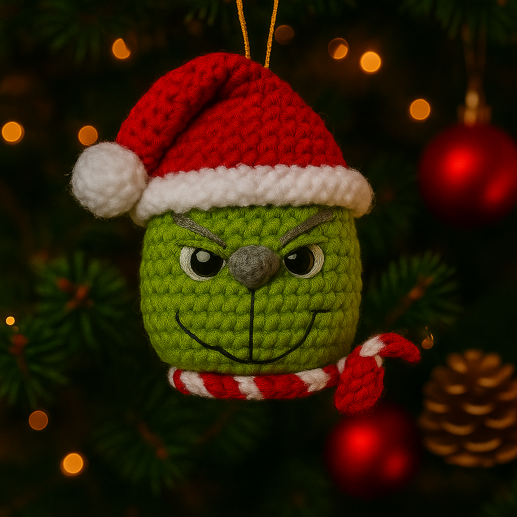 Cada detalhe do Grinch de Natal em Crochê Trama Encantada foi pensado para expressar autenticidade, humor e beleza artesanal.